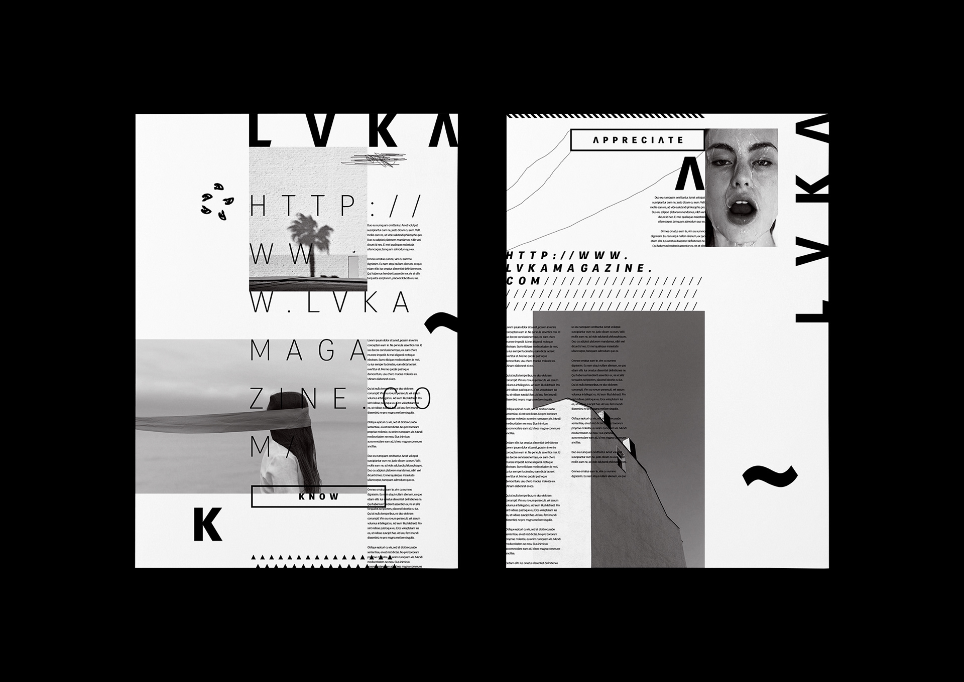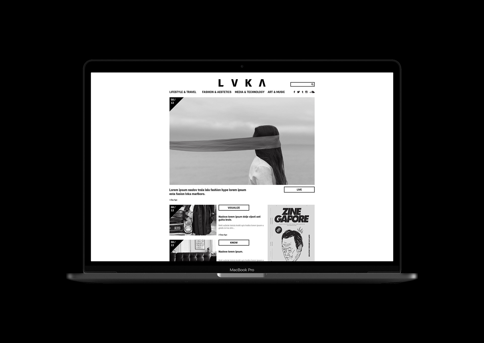Visual identity, Web and visuals for LVKA magazine. LVKA is an online magazine about Lifestyle, Travel, Fashion, Aesthetics, Media, Technology, Art and Music.
